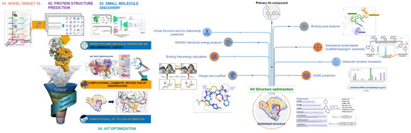 - 분자/양자 역학 및 AI를 통해 유효물질의 구조를 최적화합니다.